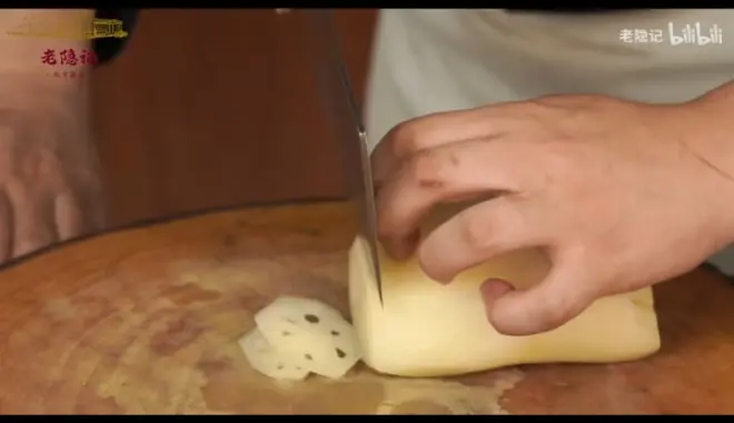 1.莲藕去皮后泡在凉水中防止变色,改刀切成一个硬币厚的片泡水中。
