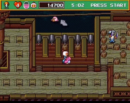 游戏的故事将带领玩家穿越一系列各不相同的关卡,并面对许多场Boss战。它拥有着精巧的附加设计,允许两名玩家协作完成关卡。以及一个标准的战斗模式——该模式提供了8张对战地图,并制造出玩家们相互丢炸弹的大混乱。