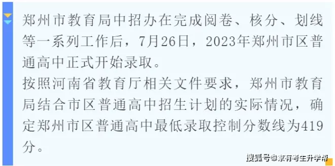 » 三批建档线419分!2023年郑州一批32所和二批15所公办高中录取分数线汇总表