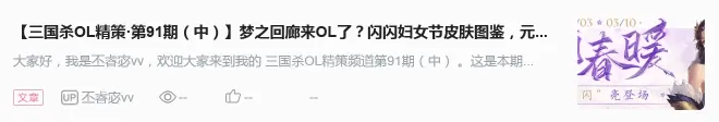 大家好,我是丕睿宓vv,欢迎大家来到我的 三国杀OL精策频道第91期(下) 。