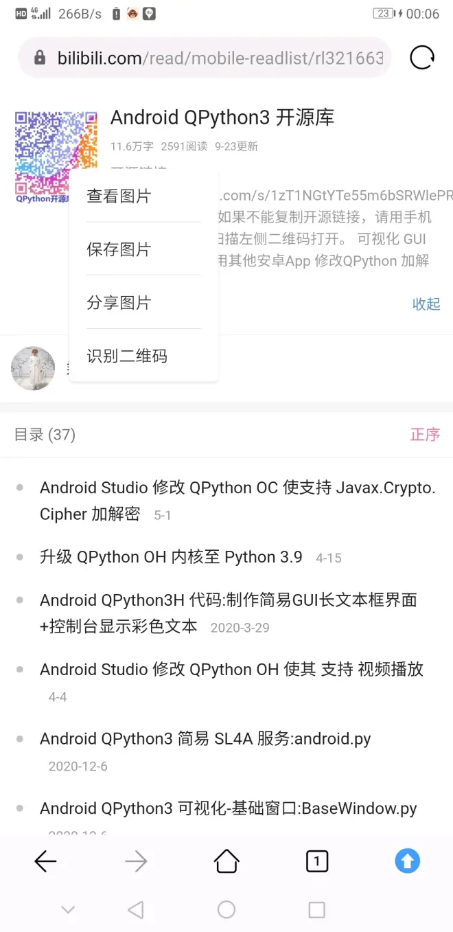 点击“Android QPython3 开源库 - 哔哩哔哩专栏”