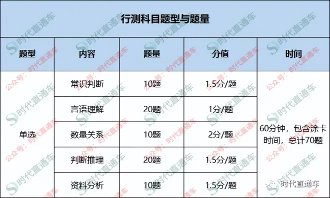 人民银行行测题目一般包括常识判断10道,言语理解20道,数量关系10道,判断推理20道,资料分析10道。