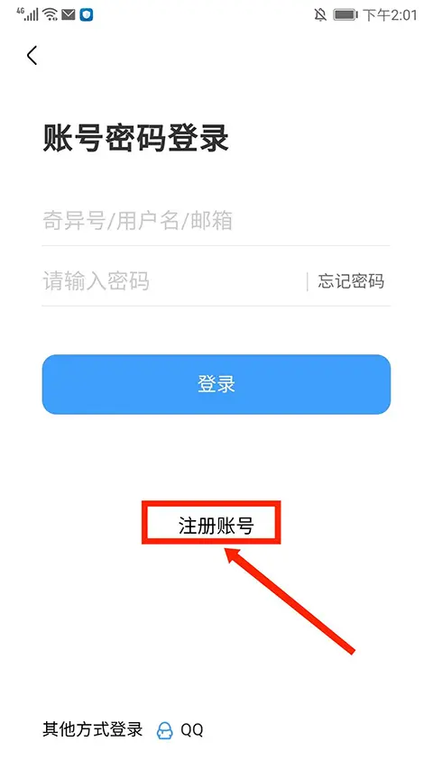 2、进入【账号密码登录】界面,选择下方【注册账号】选项,