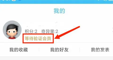 4、注册完成后,在个人信息界面会显示【等待验证会员】,