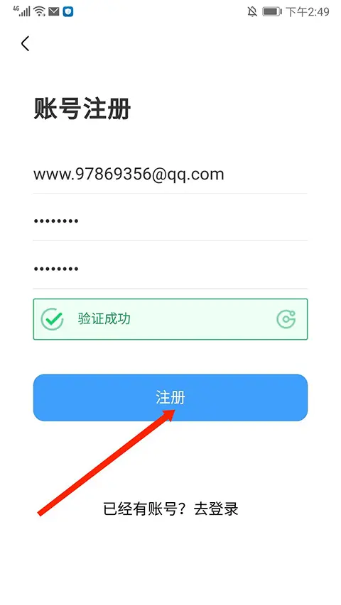 3、进入【账号注册】界面,填写好【邮箱】和【密码】后选择【注册】选项,