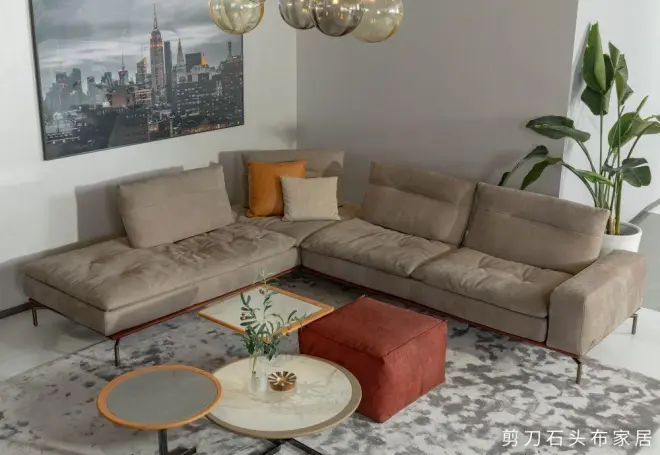 靠背可以前后移动,调节座深,侧面拉链细节+利落的金属细脚。还能选择皮布结合的搭配,为您的客厅增添更多色彩。