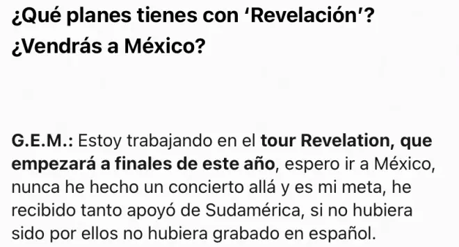 Q:你对《Revelación》有什么计划,你会来墨西哥吗?