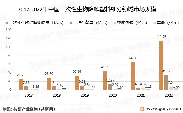 2017-2022年中国一次性生物降解塑料细分领域市场规模