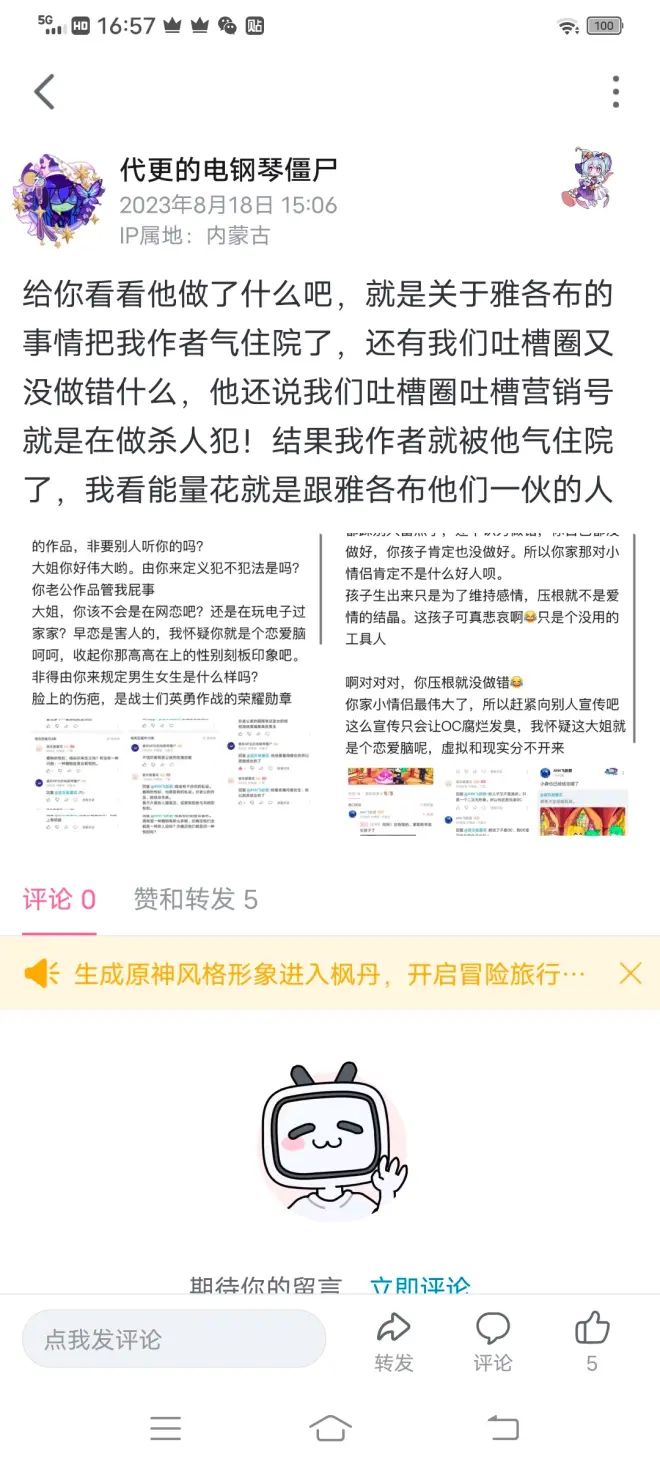 注意看,这位粉丝众多的UP,就是飞跃君 请各位避雷,与他保持距离。 原因看我之前专栏,总结了她错误 结果飞跃君生气了。这么要面子,那当初为什么不注意自己言行? 下面请欣赏飞跃君的应对操作 造假博同情碰瓷我 有本事就拿出住院病症单,拿不出来,一律视为造假。