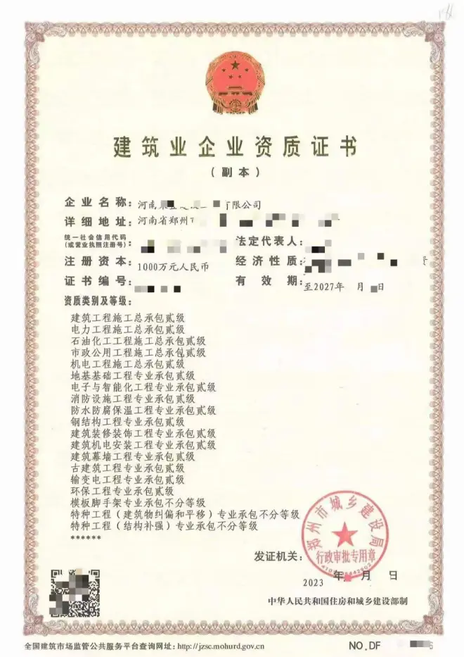 河南房建二市政二装修二级钢结构二级现成资质安许