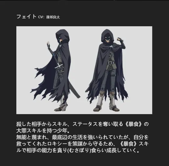 在城堡担任门卫的菲特有一个烦恼。 因与生俱来的【暴食】技能,而不断地受到空腹感的侵袭。虽认为是除了肚饿之外,就毫无用处的技能,但其实有著隐藏的力量。 某日,在杀死潜入城堡的盗贼时,菲特发现了其真正的力量。 吞噬被杀害者的灵魂,并把力量全夺取的技能……。然后,初次满足了空腹感。 以这件事为契机,被当成是无能,逐渐崭露头角。后来超越了等级的概念,以永无止境地变强之姿植入敬畏之念,被称为……「暴食的狂暴」。