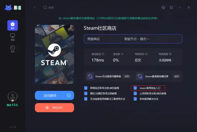 由于Steam账号注册,是由注册ip决 定了你的Steam分区。这里建议玩家可以下载暴喵加速Steam进行注册。
