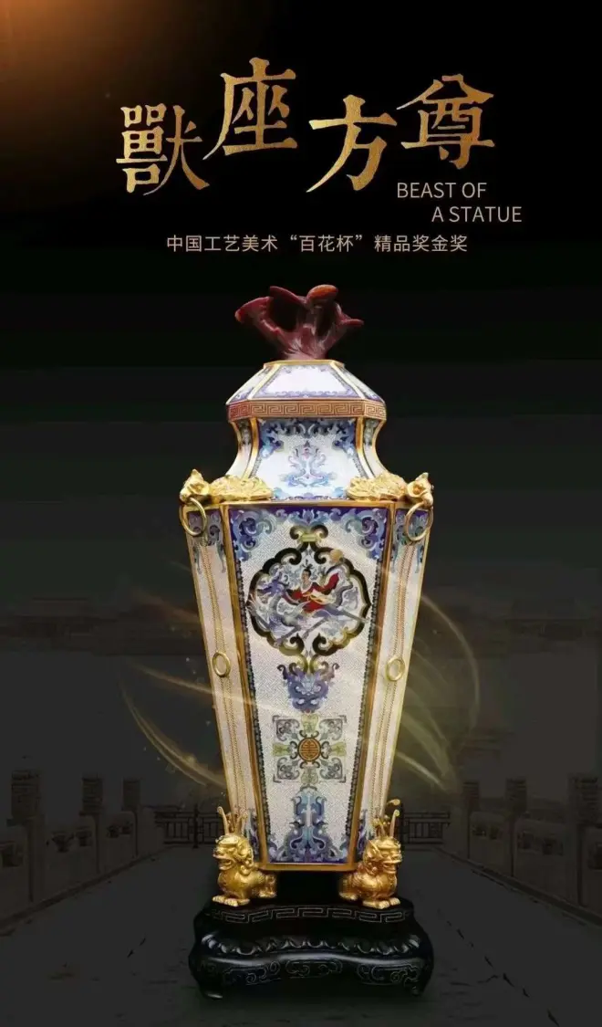 大师经典|张同禄创作精品赏析《兽座方尊》景泰蓝色调古朴典雅、雍容华贵