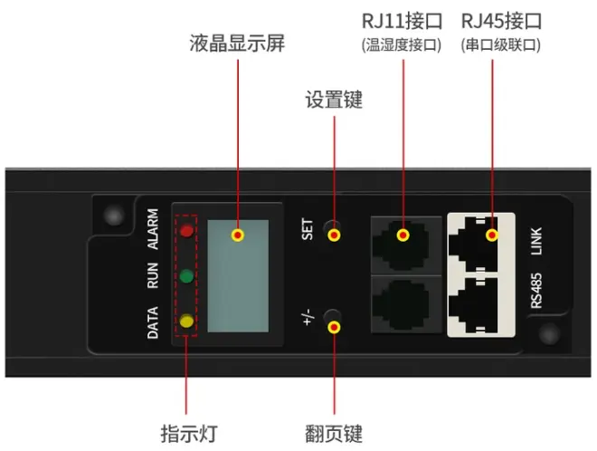 02监控管理功能完善,安全高效TOWE智能I-PDU(SNMP/RS485协议)表头模块嵌入ARM内核处理器,及专用电量计量芯片,可实现对PDU用电设备的高精度的电量计量功能,通过LCD屏幕显示各类电量及环境测量参数,实现电量监测及能耗管理。PDU具有丰富的外设接口,可接入温湿度传感器,DI输入,可接入各类开关电平状态传感器。通过烟感,水浸,温湿度传感器实现对IDC机房的周围环境监测;通过门磁,对机柜门实施开关进出管理。