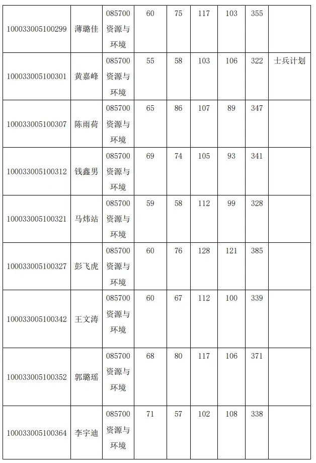 专业代码 专业名称 (项目名称) 总分 政治 外语 业务课 1 业务课 2