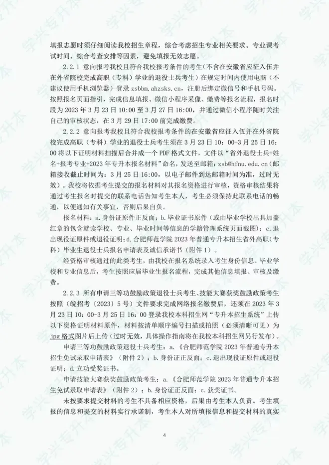 » 合肥师范学院2023 年普通高校专升本招生章程