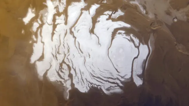 2018年火星快车(Mars Express)的雷达图像显示,在南极冰层下首次探测到最大的湖泊。根据这项新的研究,由融化的冰形成的类似的地下湖泊本来是火星生命存在的最佳场所。图片来源:欧空局/美国宇航局/喷气推进实验室/ASI/罗马大学 /奥罗塞(R.Orosei)等,2018年。