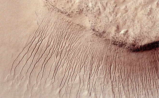 如果火星表面或近地表曾有微生物存在,它们很可能会退回地下深处,那里仍有液态水。因此,有道理的是,任何火星生命的痕迹都可能远在行星表面之下,在那里它们可以免受太阳的强烈紫外线辐射。