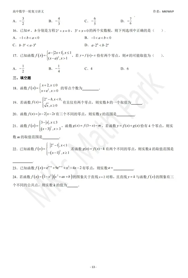 高中数学一轮复习讲义(专题12函数与方程)练习的评论 (共