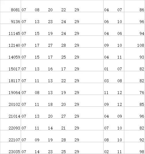 上期前区,龙头07,凤尾29.大乐透历史截止目前,前区开奖号码较接近期数: