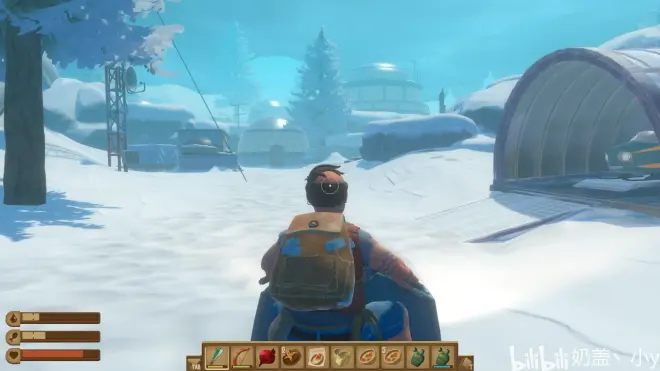 开雪橇的时候可以切换到第三人称视角,比较好开