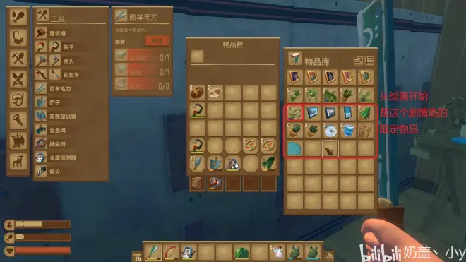 (1)剧情岛上面有北极熊,需要带上两把【初级弓箭】
