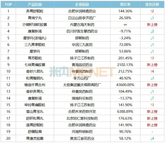 米内网:中成药燃爆104亿胃药市场,好医生康复新液再次霸榜!