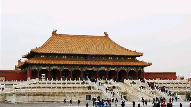 故宫建筑分为外朝和内廷两部分。外朝有太极殿、中极殿、建极殿三大殿为中心,其中太和殿俗称金銮殿,是皇帝举行朝见、册封、宴请等大典的地方。内廷以乾清宫、交泰殿、坤宁宫为中心,东西两翼有东六宫和西六宫,是皇帝处理日常政务之处也是皇帝与后妃居住生活的地方。 故宫前部宫殿,建筑造型宏伟壮丽,庭院明朗开阔,象征封建政权至高无上,太和殿坐落在紫禁城对角线的中心,四角上各有十只吉祥瑞兽。故宫后部内廷,建筑造型幽深、紧凑、私密,象征封建家族的“长幼有序,尊卑有别”。其中御花园是宫中园林集中所在,园内建筑布局对称而不呆板,舒展而不零散,无论是宽阔的院落,还是精美的建筑,都反映了古代汉族劳动人民的高度智慧。