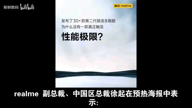 realme 副总裁、中国区总裁徐起在预热海报中表示:“发布超 30 款第二代骁龙 8 旗舰,为什么没有一款真正触及性能极限?”。