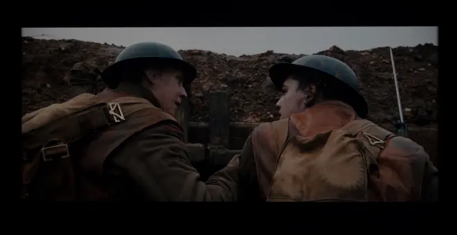《1917》我浏览过很多次,剪辑镜头其实还是很熟悉的。很明显的一个就是,主角二人走在战场上,镜头划过了一下土堆,完成了一个切换。但是我巨幕感觉时,就忽视了这个运镜,妥妥的被氛围所带入,更关注主角二人的情况。