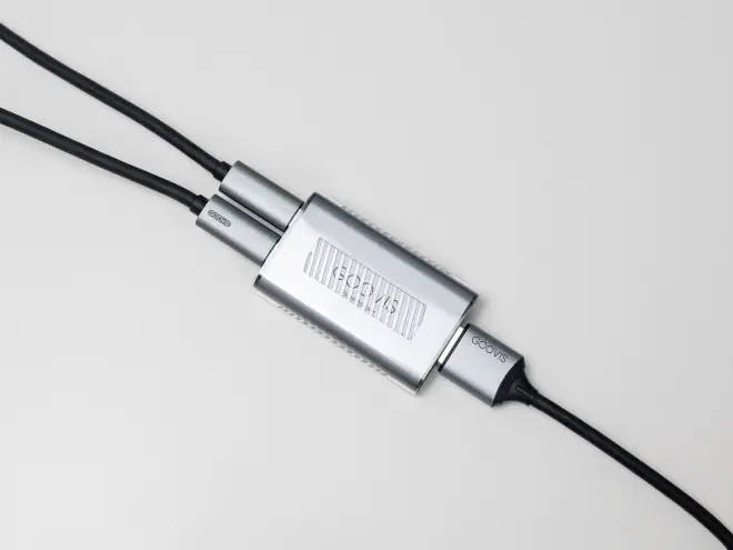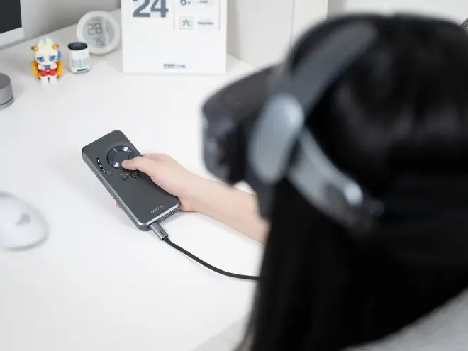 D4播放器与GOOVIS G3 Max的连接很简单,使用USB type-c数据线,连接GOOVIS G3 Max侧面,在屈光度调节旋钮旁边的USB type-c接口即可。