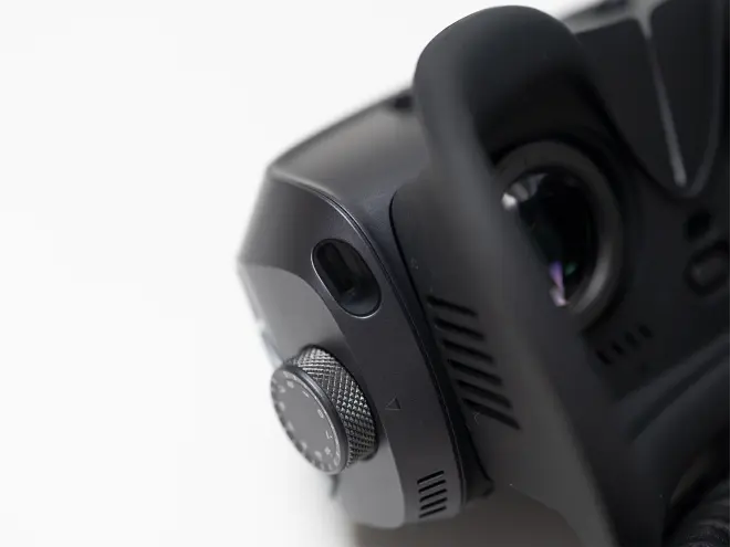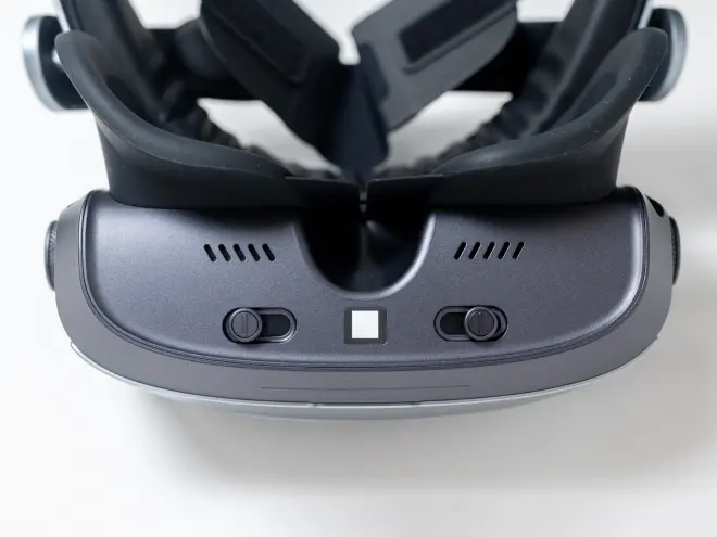 保护罩两侧有散热孔,是主动散热和防雾系统的一部分。一方面能够保证空气流通,让佩戴者不会有闷热的感觉;另一方面避免头显镜面出现雾化,影响观影。