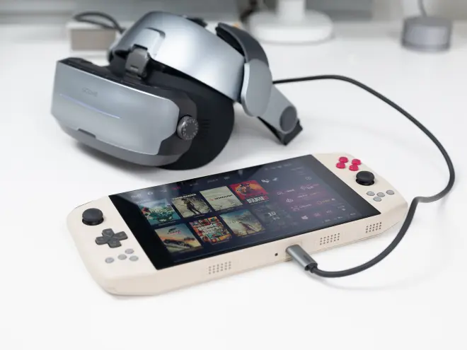 平常有使用Win掌机玩3A大作的习惯,拥有了GOOVIS G3 Max后,算是对屏幕的一个补充。这样就在随时随地,都能体验到巨幕玩3A大作的乐趣。Win掌机具备全功能USB type-c接口,所以直接使用USB type-c数据线连接GOOVIS G3 Max即可,简单方便。