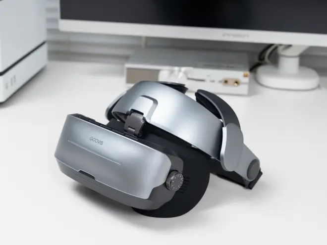 开箱GOOVIS G3 Max后,发现使用起来,要比想象中要简单。它是分体式的头戴设计,有头显和头带两部分。两部分是快装接口设计的,无论是拆解还是组装都非常简单。