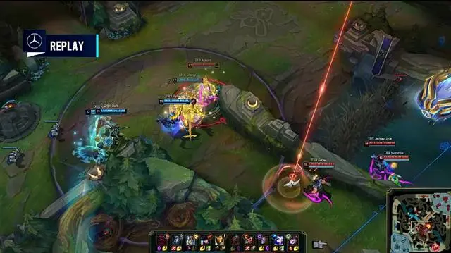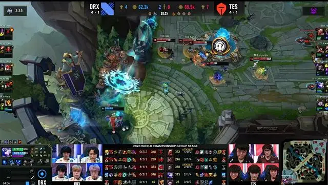 由于DRX众人回城时间稍显拖沓,TES五人成功击杀奥恩之后,决定一波结束全场比赛,当下路超级兵登上高地之后,TES五人立刻发起攻击,成功推平了DRX基地水晶,以D组第一名的成绩挺进八强。