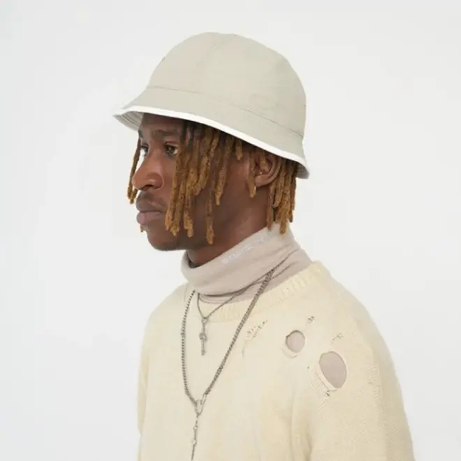 Y-3出品,必属精品,依然是圆顶渔夫帽,加上刺绣LOGO,质感上乘,有钱但要低调。双面可带,卡其色和白色都属于百搭的颜色,戴上它去挖掘多面的自己。