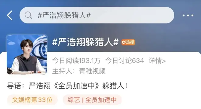 最近《全员加速中》分享了全新的预告,在其中是节目嘉宾们躲避猎人的片段,严浩翔直接躲在了一帐篷布下面,儿马嘉祺直接藏在了一车底,两人的方式都真的是好可爱。在这期待一下节目正片的播出吧。