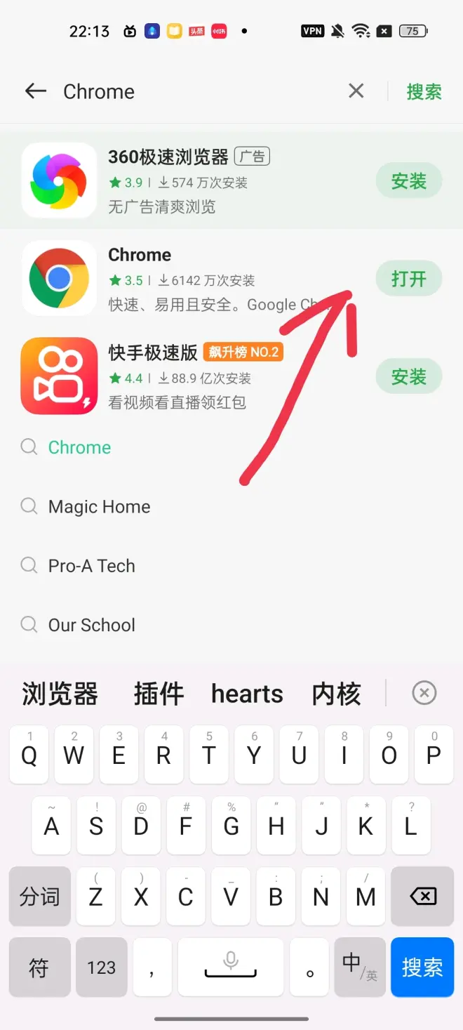 1.下载Chrome浏览器 在手机软件商店即可下载。