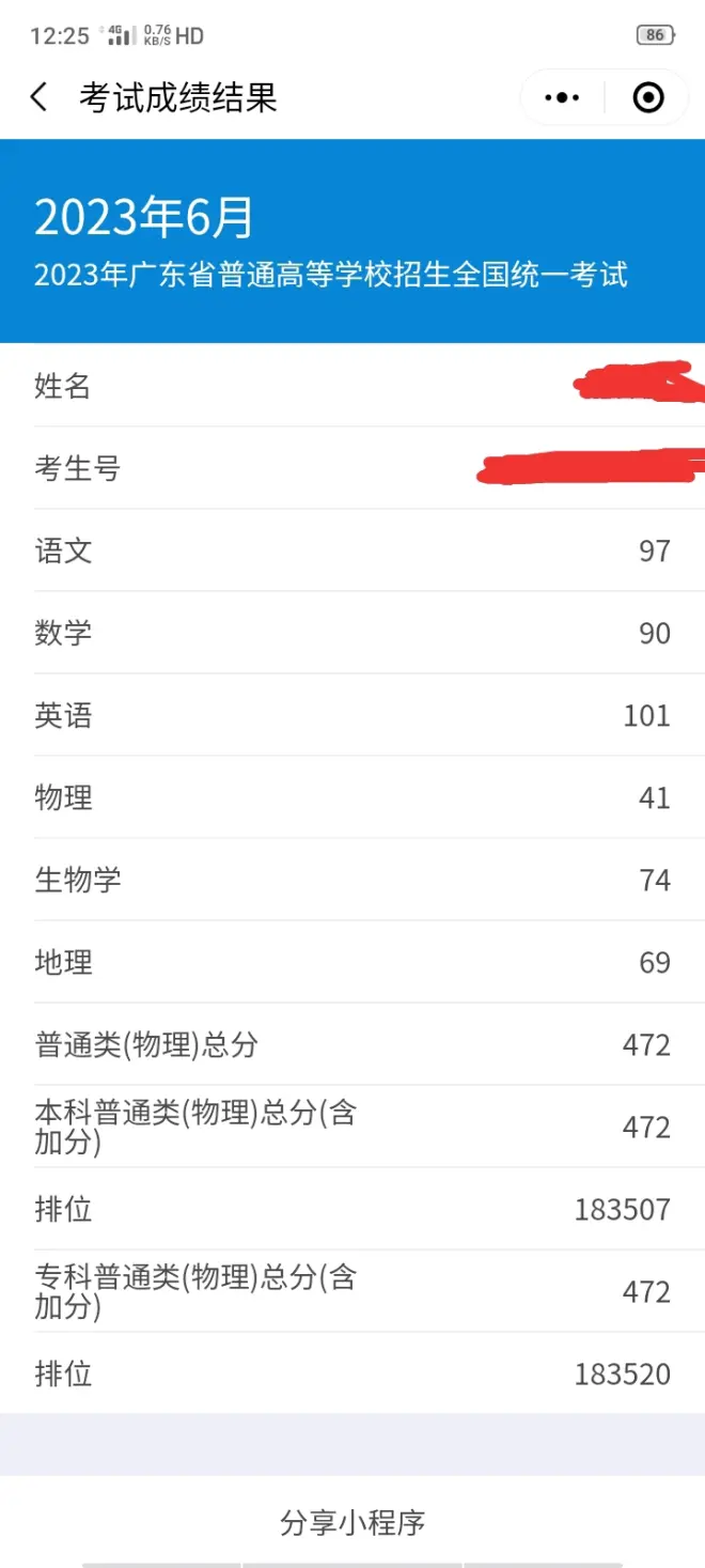 刚查完成绩就受不了了,物理拉大分,语文也挺差的。T_T