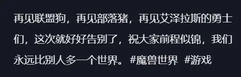 今年一月份停服之时,“再见联盟狗,再见部落猪,再见艾泽拉斯的勇士们,”成为我们留下给另一个世界的最后一句话。