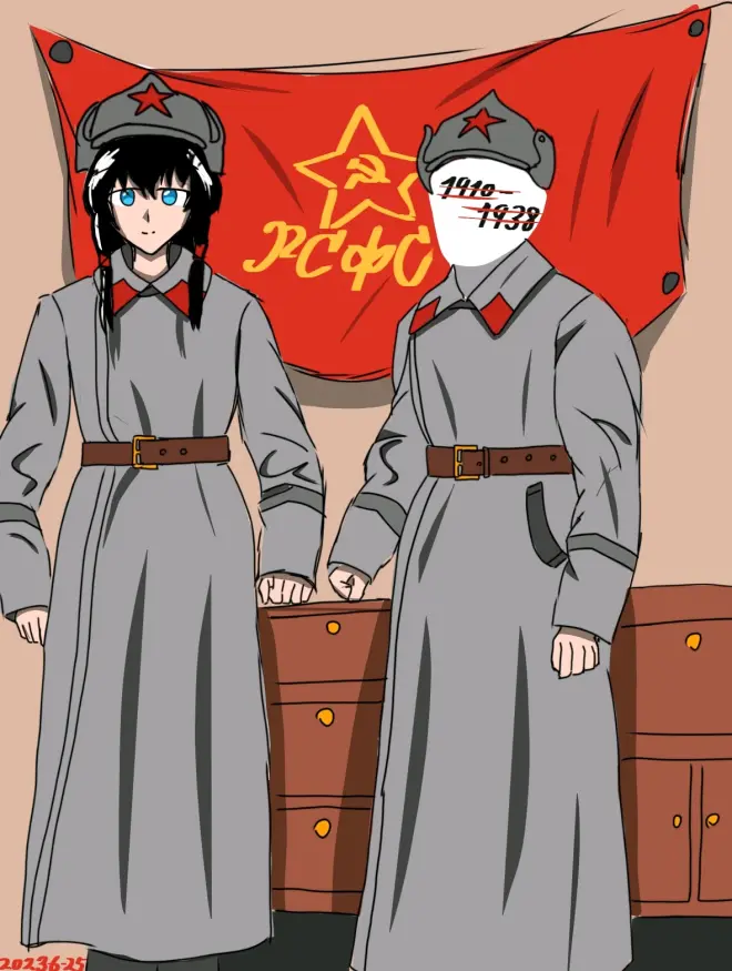 第一次画架空的,不过勋略还是苏联勋略,红袖章大家自行脑补三个字( )。总的来说有提高,会画背景了