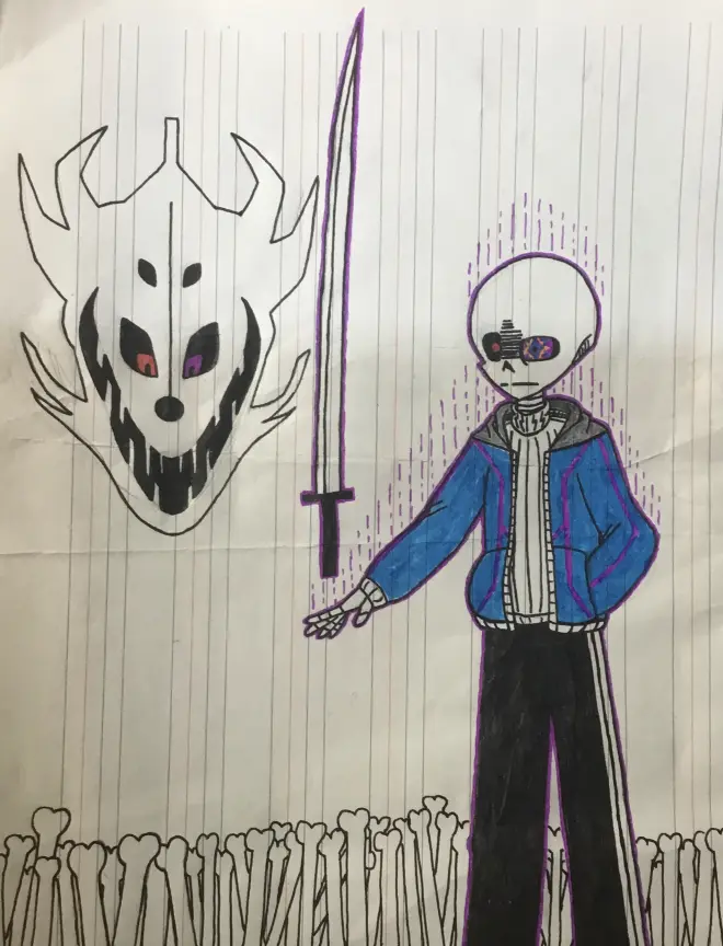 XGaster在一次实验中发现:灵魂融合后融合体的实力相当于原来个体的总和,记忆也会合并,于是他收集了所有的灵魂碎片与人类灵魂(即无论原版游戏走哪条路线人类灵魂都会消失的原因),按照各个人物分过类后(即所有sans的灵魂放在一起 ,其他人物也一样,不管类似反转,ss的换位)投放到一条正在经历屠杀时间线中(原版),灵魂碎片互相融合,最后所有人复活,frisk摆脱了玩家控制(而玩家眼里只是游戏闪退),奇妙的是,人类灵魂都汇聚到了sans身上,灵魂碎片的到来也使得这条时间线出现了一个巨大的裂口,作为曾经的皇家科学家,sans决定到裂口外看看,而裂口外就是多元宇宙,他在漂泊途中遇到了UKB和VHS,并向他们学习了代码知识。他发现他们都是通过漏洞来获得力量(UKB不用说,VHS自己就是个漏洞),于是他来到多元宇宙最大的“漏洞”——errortale,并阴差阳错地进入了anti-void(即反虚空,404获得力量的地方),凭借超强的身体素质(灵魂碎片与人类灵魂加持)吸收了25%的力量(404:6),并向404学习了如何熟练使用力量(404:杀人诛心是吧),从404的话中意识到了“人类”的真正意义是“玩家”。此时XGaster出现,得知自己是实验品后与其展开激战(事实上只有几回合),完败XGaster并将其所有数值归零,使其无法死亡,放入一个自制地狱中,令其无限感受痛苦(老板:哟老弟来陪我了)。