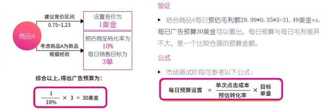 比如王老板的商品A,预估转化率为10%,预估每日单量:3单,预估CPC为1美金,那么它的广告预算经计算得出为30美金。