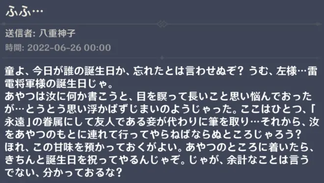 » 【原神】生日邮件(日语版)——2022年2月28日~7月20日