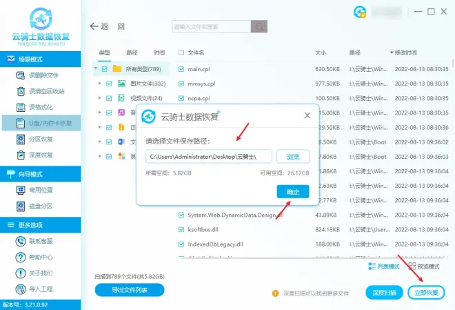 软件版本:云骑士数据恢复软件 3.21.0.92