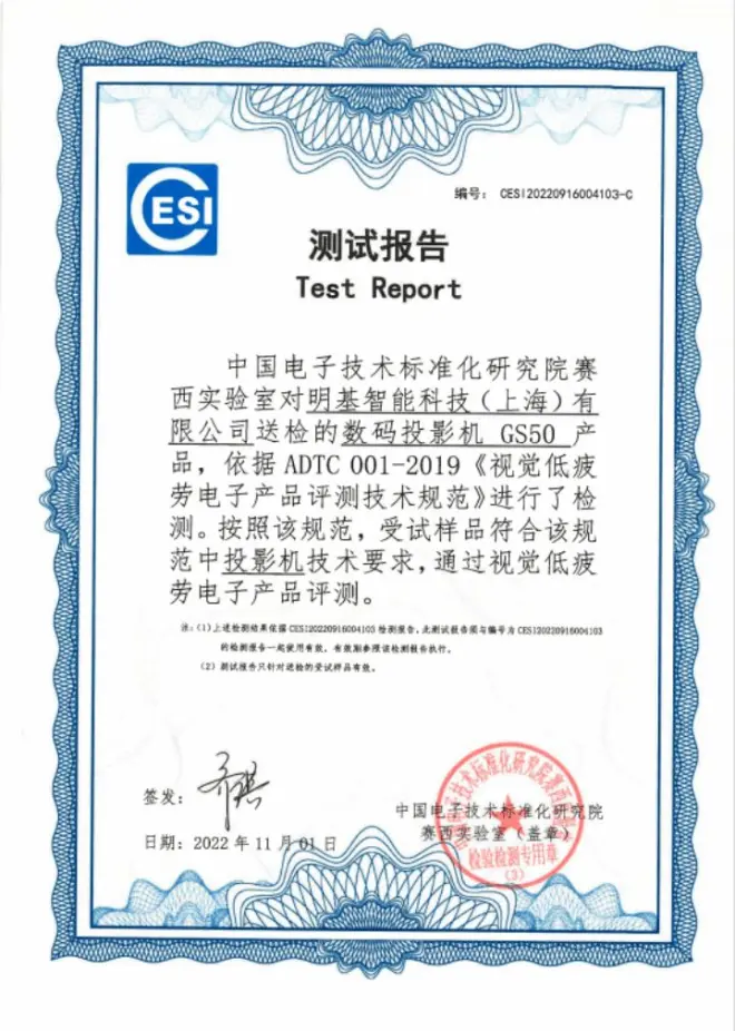 作为一款亲子友好的投影,护眼可不是吹吹而已,这款GS50是真的通过了专业机构检测认证,是一款低视觉疲劳的电子产品,给孩子使用的产品,还是要官方认证的才放心。
