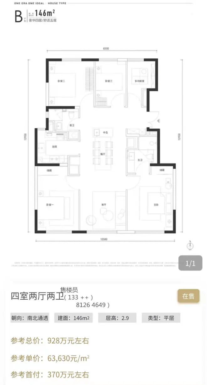 整个小区住宅共18栋,是6-10层的纯低密洋房产品。二期户型产品和一期一样,以改善为主。面积段为111㎡可变三居/146㎡可变五居。均价在6,3万/㎡,且为精装交付。建筑风格为红砖校园风,容积率只有1.84