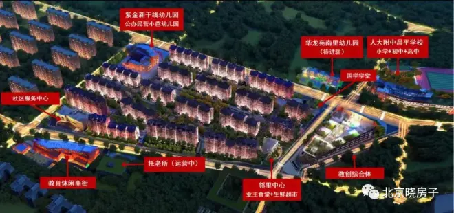 紫金书院南侧600米,紧邻人大附中昌平学校可以说是楼盘的主要卖点了,2020年9月份小学部、初中部已经全部开学。