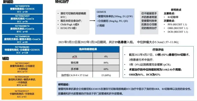 D+T的双免组合方案在肝癌获得成功,在胆道恶性肿瘤领域也有研究布局。