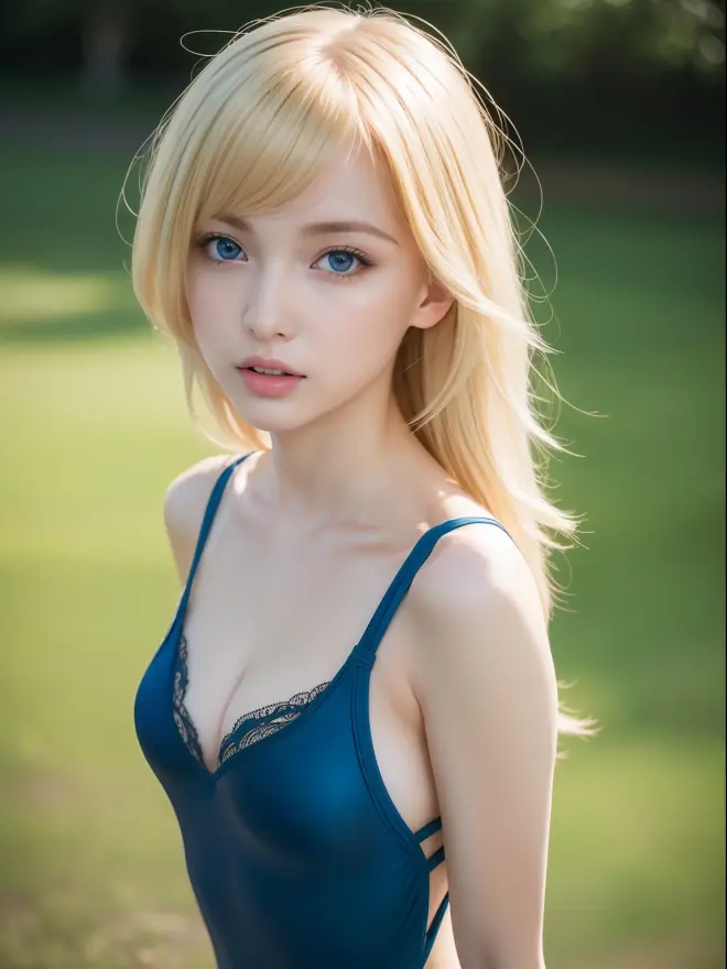 黄头发的可爱小妹妹,经常约我到小树林里,她在奋力追求我,我可咋办呢!AI绘画
